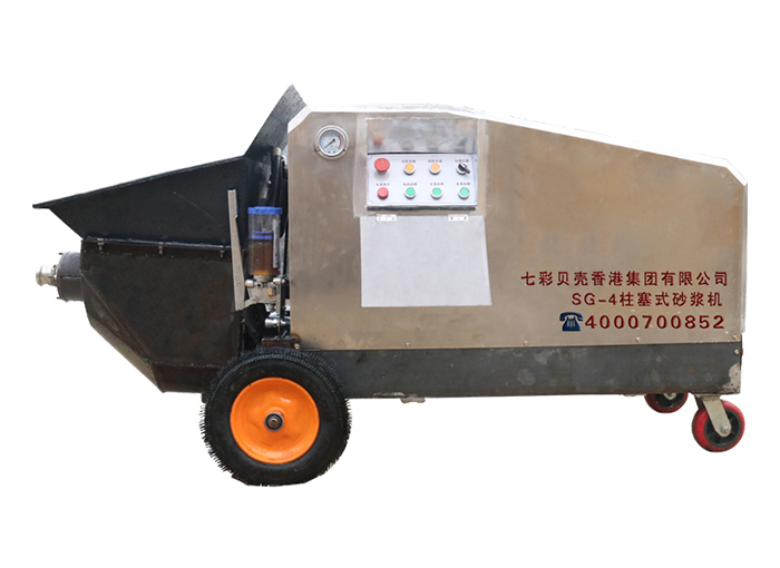 SG-4柱塞式砂漿噴涂機產品性能穩定,降低工程造價等特點。具有儲料、壓力輸送、噴涂各類砂漿等功能,工作效率高、基本沒有落地灰、噴涂均勻、體積小、移動方便、結構簡單、易清洗等特點。速度快,效率高,勞動強度低,一臺噴涂機每小時可輕松噴涂150平方米,除去準備時間,每天工作8小時計算,可噴涂1000平方米以上。