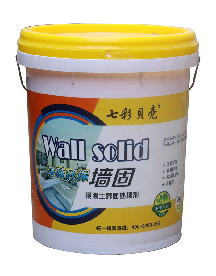 墻固即聚合物混凝土界面處理劑,外觀為乳白色膠液。具有滲透性,能充分浸潤墻面基層,使基層密實,提高光滑基層界面附著力,粘結強度高,保證水泥拉毛牢固可靠,提高膩子或灰漿與墻面基層的粘結強度,有效防止找平層空鼓、開裂,提高施工質量,加快施工進度,是裝飾裝修工程中不可缺少的配套材料。適用于混凝土、加氣混凝土和磚混墻面批刮膩子或抹灰前基層的界面處理,適用于在墻面基層進行人工“造毛”,即造水泥拉毛。